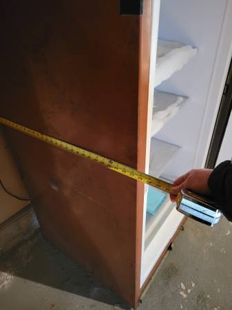 Old General Electric garage freezer. Works great. 30.5" wide 65" high 27" deep Antique. Manufactured April 1946. Text me at