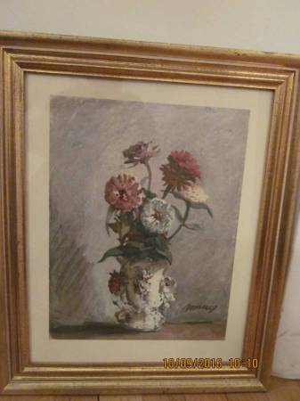 2 floral pictures- 14.5 x 17.5, 15.00 for the set, if you are interested, reply with your phone number and I will contact you. Sorry I do not ship my items.