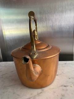 Antique Copper Tea Pot 10" Linton Made In England 9.75" bottom to top of handle, and 7.5" wide, With Spout 10" Circa 1920s-1940s.