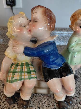 Antique 3 kids statute, maybe from the 30's or 40's porcelain or ceramic, 7 x 4.5 x 9.5. if you are interested, please reply with your number and I will contact you, and sorry I do not ship my items.
