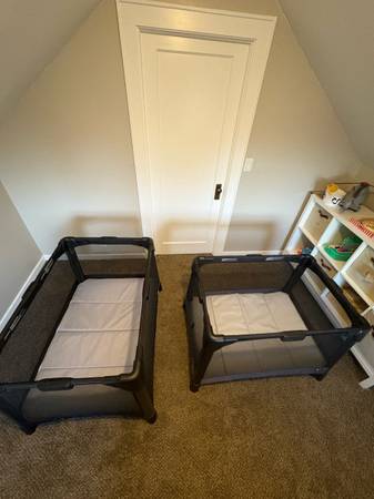 4 Moms Breeze Plus Pack and Play 4 Moms Breeze Go Pack and Play Both come with Bassinet Can be sold separately. $150 each.