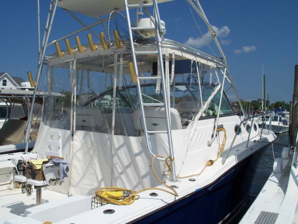 2003 Wellcraft Coastal 33 Sport Fisherman Twin Gas engine Volvo Penta 8.1L Gil-C 375 HP The 2003 Wellcraft 330 Coastal is a fishing boat that combines the features of a cruiser with a lot of space for fishing in the aft deck. It has a modified-V hull, wide beam, and prop pockets. The 330 Coastal has a length of 33'4" (10.16 m), a beam of 12'8" (3.86 m), and a dry weight of 16,000 lbs (7,257.6 kg) with gas. It has a fuel capacity of 288 gallons (1,090 L) and a water capacity of 52 gallons (196.8 L
