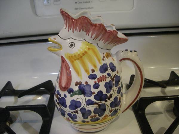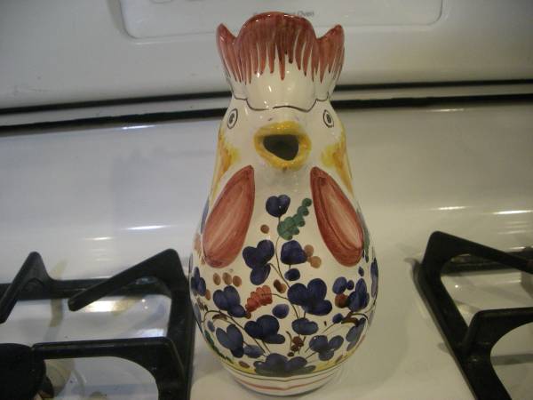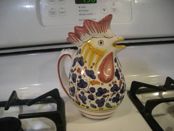 Chicken Pitcher, 5.5 x 7.5, if you are interested, please reply with your phone number and I will contact you. sorry I do not ship my items.