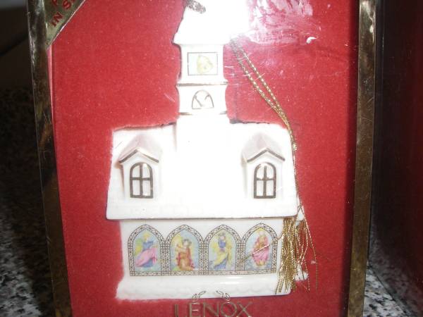 Lenox churches & babys first christmas ornament, 2002, if you are interested, please reply with your phone number and I will contact you. sorry I do not ship my items