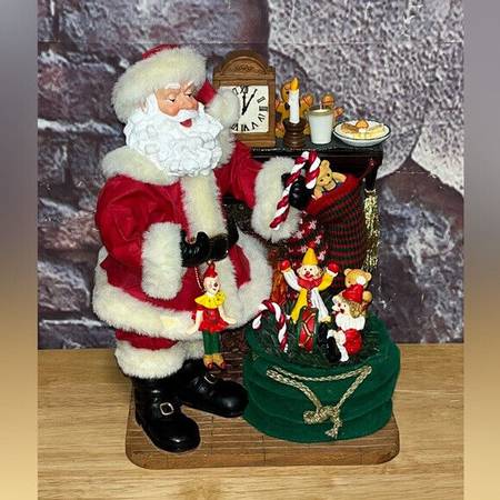 1-Kirkland Santa Claus Fireplace Christmas Figure Display / Fabric Mache in box: $30
