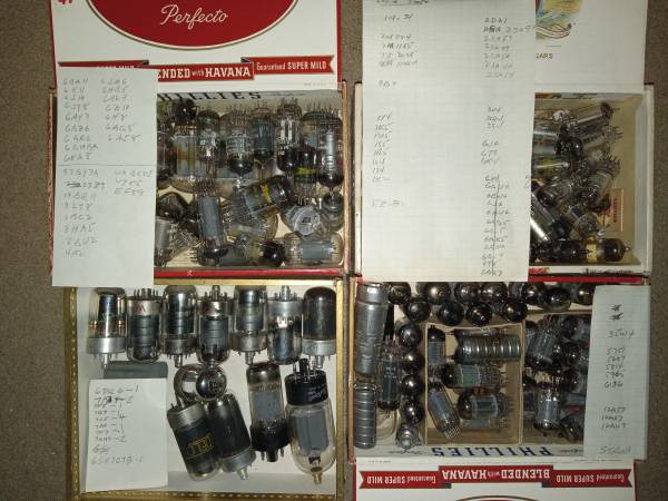 Large stock of vacuum tubes - over 250. Mixed - used and new, assorted types (power amps, radio, TV). Pictures have handwritten lists included; detailed inventory available. Price negotiable, make...