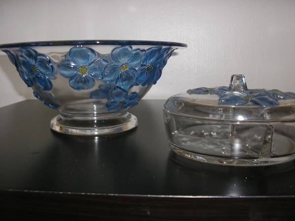 Two (2) beautiful glass pieces with Blue Flowers. Desire to sell together, however, will consider selling individually.