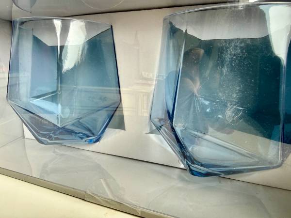 2 Tabletops Gallery Facet DOF Glass Sets in Blue. both new in box. No holds. Contact me when you’re ready to come see them. Cash only. Calls only.
