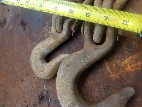 25' tow chain 1/2" links heavy duty hooks, equipment tie down bulldozer payloader grader etc. Item is in good condition, what you see is what you will receive. If posted item still available emails with no ph # will go unanswered, email offers will not be responded to, cant get/send texts cash only can load