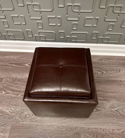 Brown, leather storage ottoman for sale. 15x15x13”. Price: $70