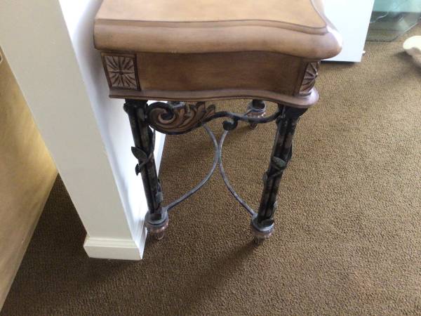 This cabinet measures 15” deep by 22” across and is 27” high. It comes with an iron base and wood top.