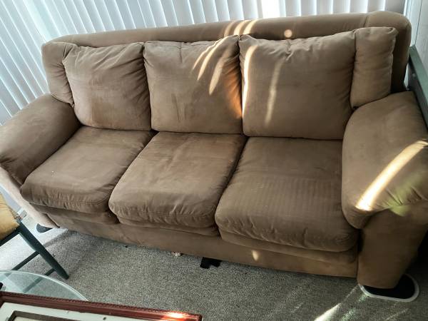 Tan microcloth sofa/sleeper full/queen FREE Heavy so bring a truck and a strong friend You will be responsible for lifting and moving Text for arrangements if interested
