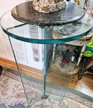 Mid Century Modern/ Contemporary beautiful tall and extremely heavy, thick, tempered, clear glass stand that comes in 2 separate pieces in great, like new condition!