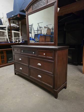 Selling a nice modern dark walnut color 7 drawer dresser with attachable mirror in excellent overall condition. Very solid and well made piece of furniture. Measures 66 inches wide, 38 tall and 18 deep. Please call or text me at show contact info
