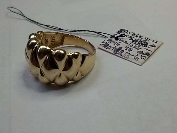 Beautiful and Unique Custom Design Fashion Ring with Dome Shaped Bulging Diamond Shaped Patterns Front in 10 KT Yellow Gold for sale at discount price..