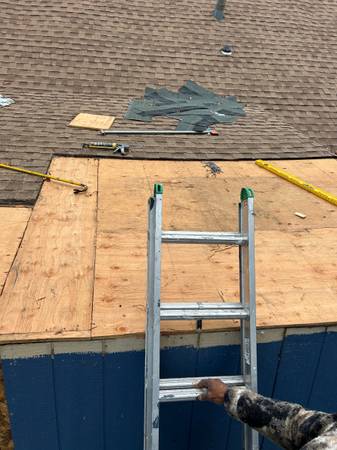 Low roof had a leek, I replaced 3 boards of plywood, I need experienced roofer to finish the job, it has 3 layers of shingle. Here is a pic!