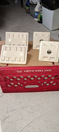 Bathroom Tiling fixtures for walls. Color is Off white/Bone. Tub soap dish, Toilet paper holder, Sink soap dish, Sink cup & toothbrush holder.