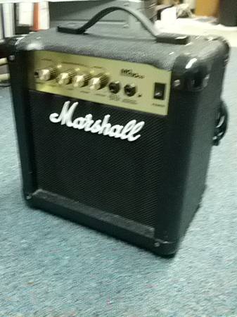 The 2005 Vintage Marshall MG10CD is a 10-watt, solid-state guitar combo amplifier with two channels (clean and overdrive), a 6.5-inch speaker, and a single input. Key features include a CD input for playing along with music, an emulated headphone output for silent practice, and a "Contour" EQ control to shape the tone. It weighs approximately 11 pounds and has dimensions of about 11.6 inches wide by 12.2 inches tall and 7.5 inches deep.