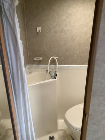 2003, 24’ Campmaster toy hauler trailer, made by Roadmaster, 11’6” garage, very good condition, was always stored under a carport, table and booth, fold down bench, small stove top and microwave, small fridge, closet and storage areas, toilet and shower combo, side door, ramp door in rear, sliding screen to close off garage area, heat and air conditioning, new jack, several windows. $11,900. Call Gene show contact info